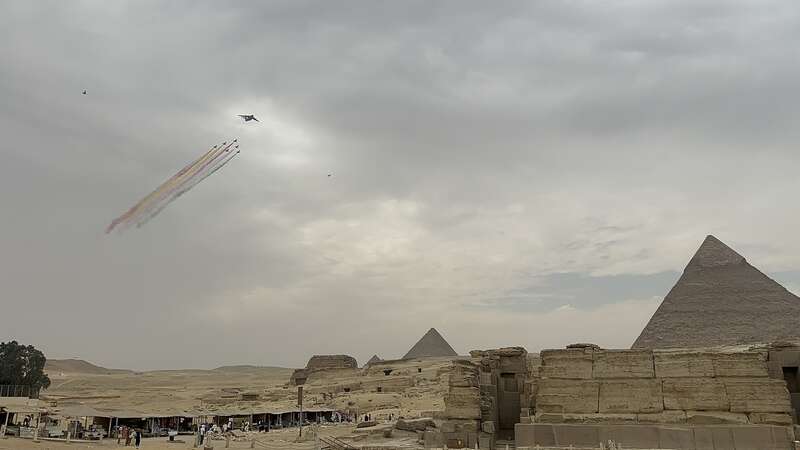 之后,空军八一飞行表演队6架歼-10表演机编组大箭队,拉出彩烟再次飞越金字塔;随后,运-20间隔完成飞越。吉萨金字塔景区内,观众不断挥手致意,争相合影留念。这一刻,历史文化与现代科技相融,以壮美姿态在新时代相遇。