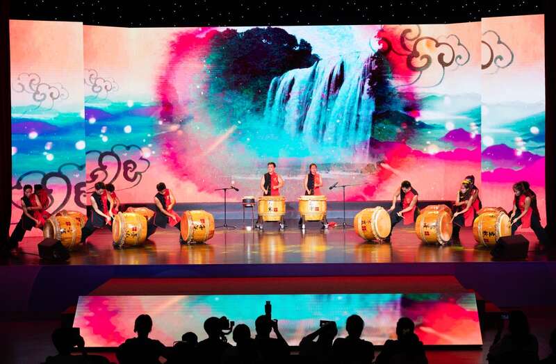 当天,潮州市潮響鼓社以二十四节令鼓《惊蛰-英雄魂》开场;东莞民族乐团带来了新民乐合奏《临境·炫动》;清远市连山壮瑶山歌队、湛江市青少年宫童声合唱团及惠州爱乐合唱团带来的表演唱《枯滴桃》《我从红树林走过》《水东街》别具岭南民族韵味和地方人文特色。