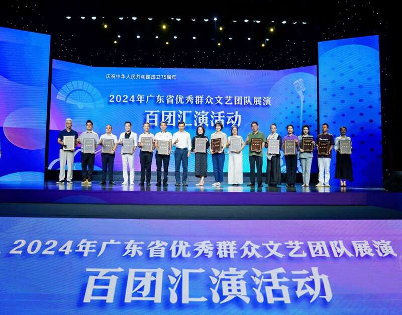 “百团汇演”活动期间,广东省各地参加展演的团队达390支,演出1100余场,参演人员7800余名,线上线下共惠及观众超1100万,15支团队被评为2024年广东省“百团汇演”优秀群众文艺团队。