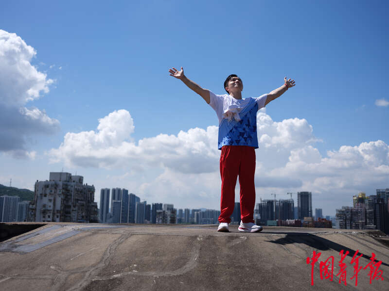 9月1日,中国澳门,大炮台景点,巴黎奥运会吊环冠军刘洋在山顶拍照。中青报·中青网记者 李隽辉/摄