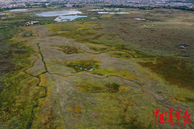 9月1日,从空中俯瞰西藏拉萨市拉鲁湿地国家级自然保护区。(无人机照片)这片湿地拥有独特的青藏高原高寒湿地生态系统,为黑颈鹤、胡兀鹫等珍稀濒危物种提供了栖息之地,同时也是西藏特有物种的家园,拥有丰富的生物群落和多样的生态系统服务功能。拉鲁湿地在维持拉萨市城市生态平衡、保持生物多样性、调蓄洪水、防风固沙、保障人居等方面发挥着不可替代的作用。中青报·中青网记者 孔斯琪/摄