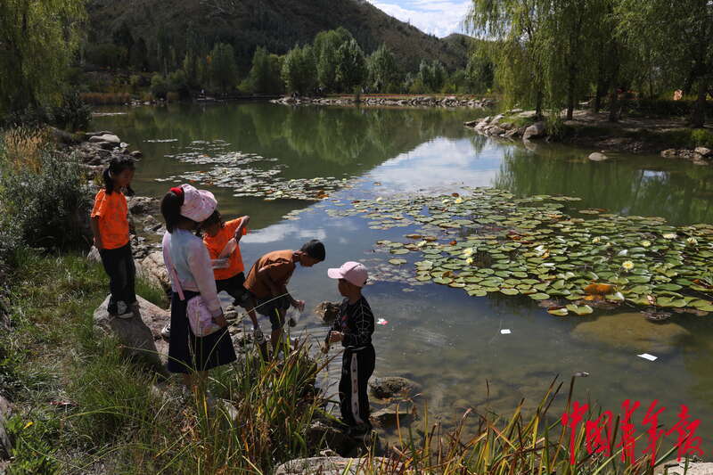 9月1日,西藏拉萨市南山公园,小朋友们在湖边玩耍。中青报·中青网记者 孔斯琪/摄