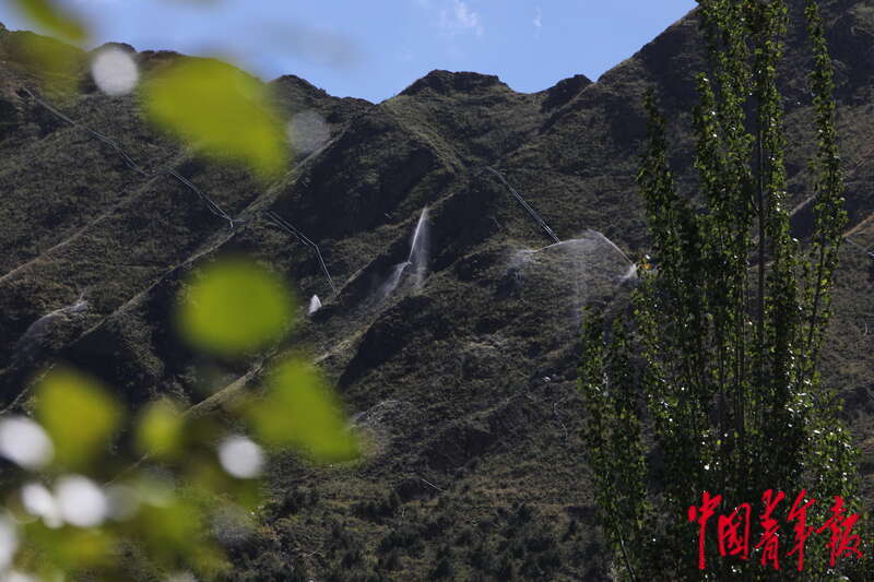 9月1日,西藏拉萨市南山公园,自动化喷灌设备每天定时定量为山体上种植的多种植被输送水分。中青报·中青网记者 孔斯琪/摄