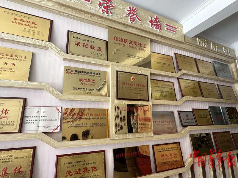 中国青年报客户端讯(中青报·中青网记者 石佳)走进位于西藏日喀则市桑珠孜区的江洛康萨社区居民委员会,能看到一整面的荣誉墙。9月2日,江洛康萨社区党支部书记次旦央吉向“铸牢共同体 中华一家亲”主题宣传暨“雪域高原焕新颜”调研采访团介绍说,“我们获得全国民族团结进步模范集体、全国民族团结进步示范社区、全国最美志愿服务社区3项国家级荣誉,还有8项省部级荣誉。”