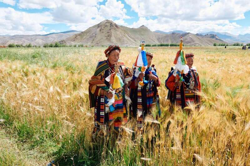 这场田园艺术秀,由金山企业沙涓羊绒发起,也是其在雪域高原举办氆氇时装秀的第二个年头。如果说,一年前的“雪域·回响”喜马拉雅大秀是向世界展现中华民族千年的非遗复兴,那么这一次,沙涓想要探索打造的,是传统手工业传承和现代文旅融合发展的新路径。