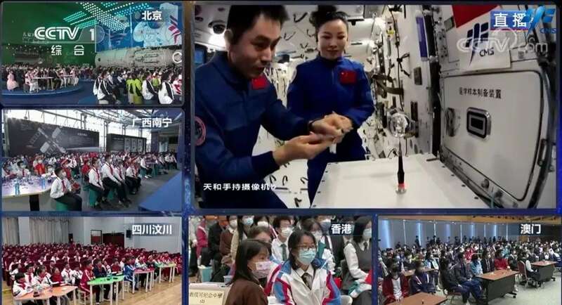在约60分钟的授课中,3名航天员在轨介绍展示了中国空间站天和核心舱的工作生活场景,演示微重力环境下细胞学实验、物体运动、液体表面张力等现象,讲解了实验背后的科学原理,并与地面课堂进行实时交流,传播了载人航天知识,激发了广大青少年对科学的兴趣。