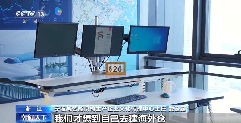 宁波某智能桌椅生产企业文化传播中心主任 魏露露:在海外销售的时候,我们对于仓储、物流要求比较高。我们才想到自己去建海外仓,降低我们的整体运营的成本。