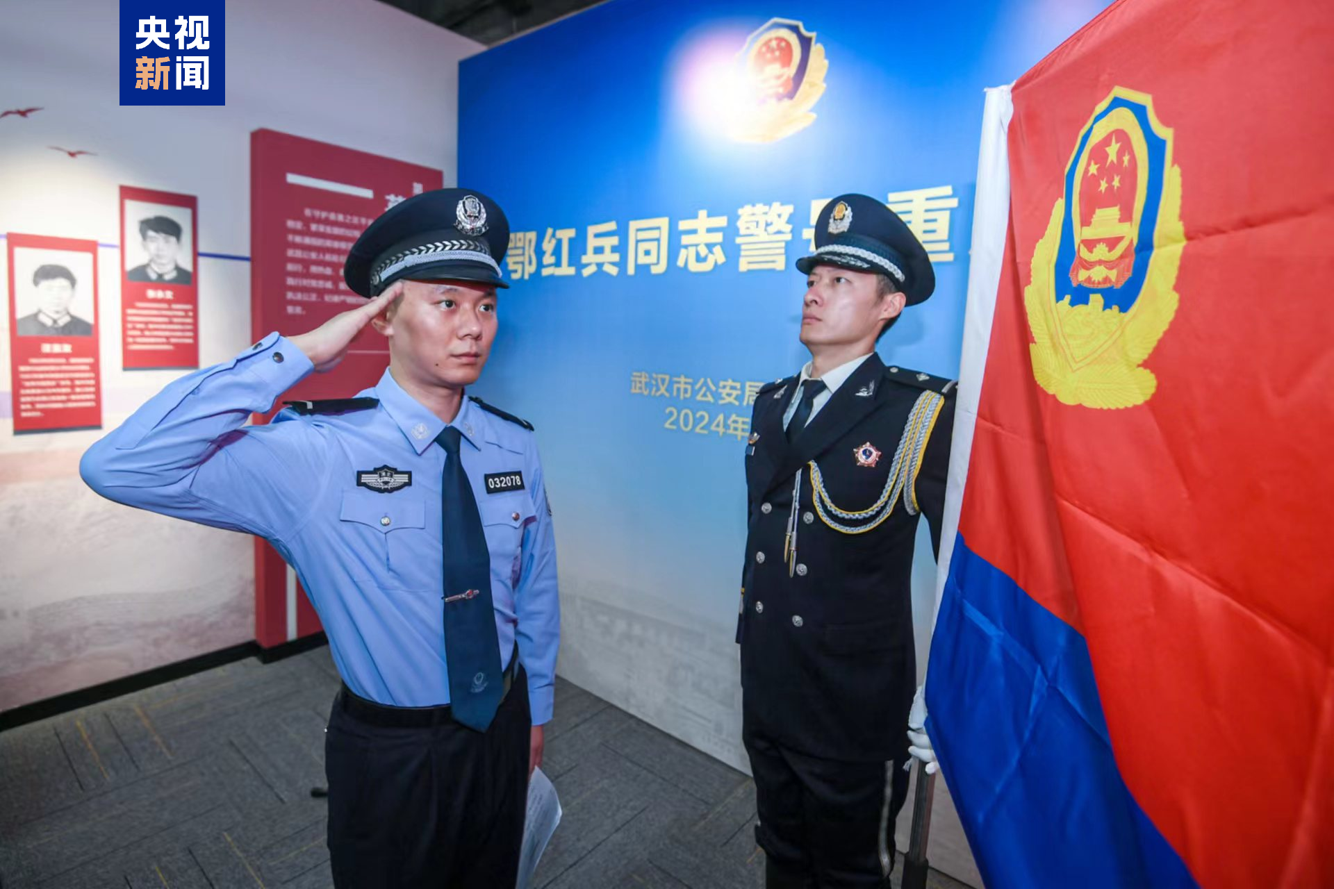 9月24日,武汉市公安局武昌区分局举行因公牺牲民警鄂红兵“警号重启”仪式,新警员鄂靖接过了父亲鄂红兵生前警号“032078”,延续这份神圣而又光荣的使命。