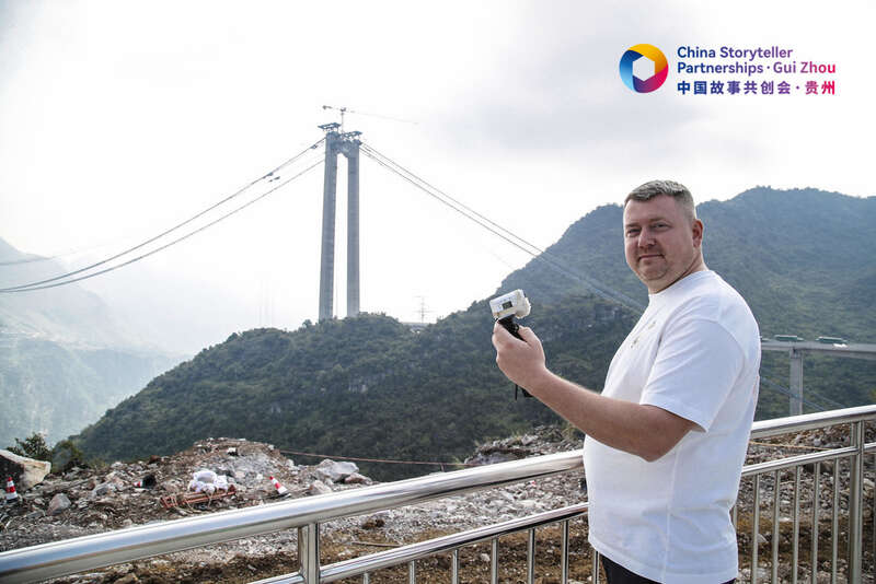 27日,2024中国故事共创会“外籍网红贵州行”采访团走近在建世界最高桥花江峡谷大桥。