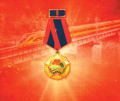 这是一枚“黄金大通道”铸就的勋章,它见证了一个让“山不再高、路不再长”的动人故事,它就是老挝政府授予国铁集团的“国家一级发展勋章”。