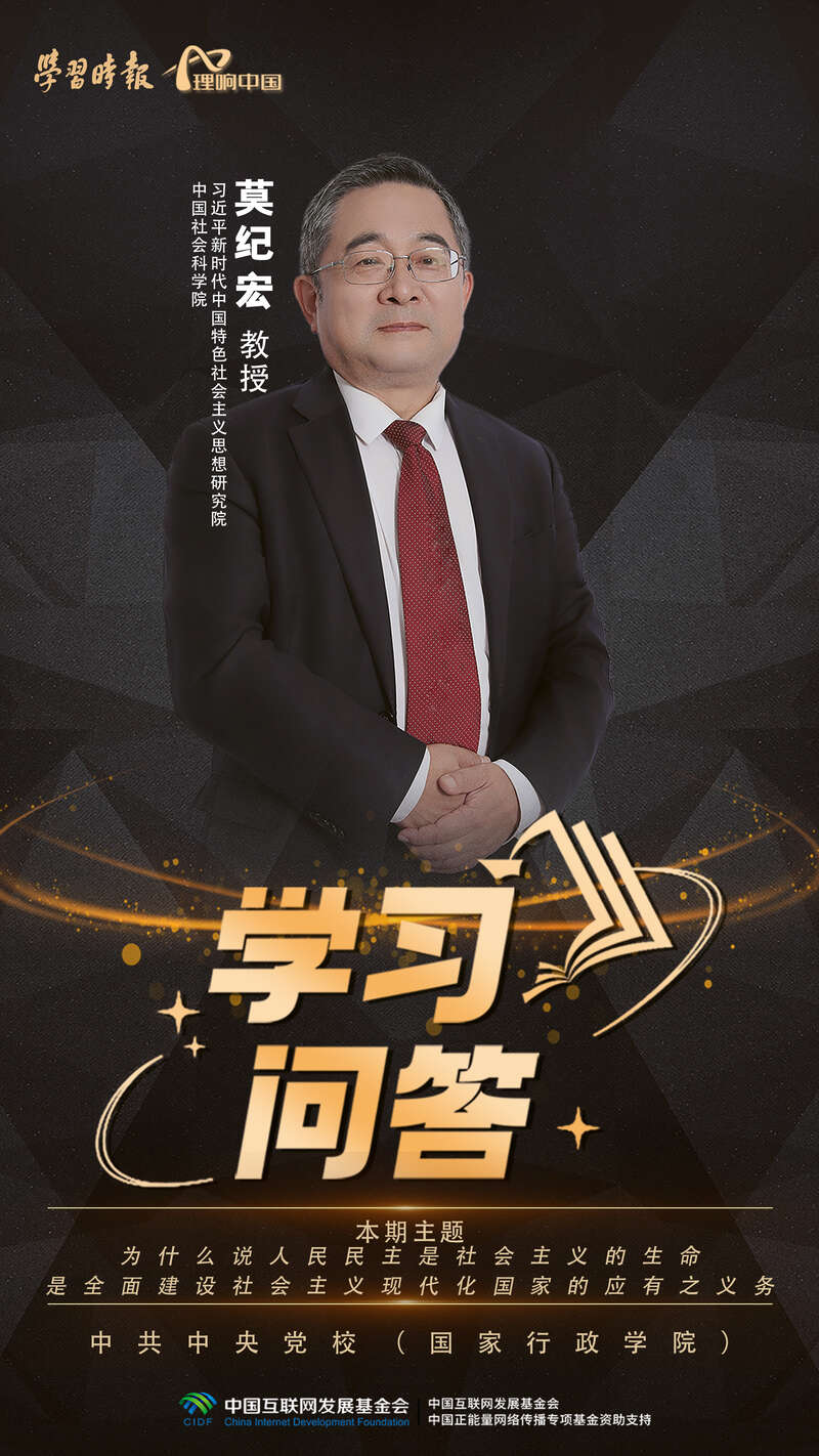 党的二十大报告指出,“人民民主是社会主义的生命,是全面建设社会主义现代化国家的应有之义。”请问莫教授,该怎样理解人民民主与社会主义和全面建设社会主义现代化国家之间的关系呢?