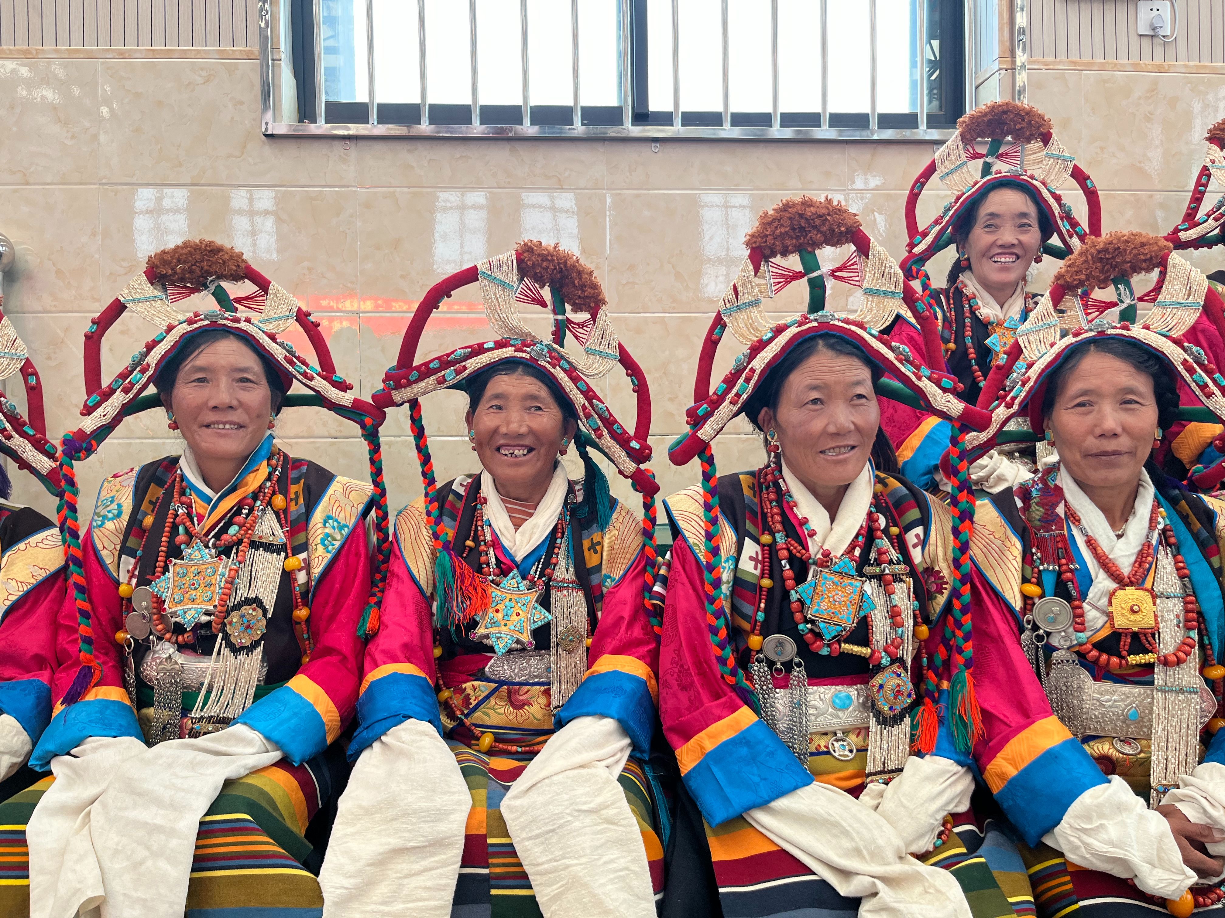 现在的谐钦队共有67名成员,30岁以下的年轻人有8人,云丹卓玛老阿妈也如愿收了一名“关门弟子”曲桑。她是谐钦队的现任队长,从事谐钦已有20多年,后被评为萨尔谐钦市级非遗传承人。“我们力求在保留萨尔谐钦原汁原味的基础上,在舞步与服饰上有所改进,更好地展现当代农牧民的风采。”她说。