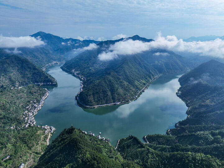 发源于黄山六股尖的新安江,一路向东穿山越岭,百转千回于徽州白墙黛瓦间,汇入杭州千岛湖。地图上看,新安江犹如一条绿丝带串起安徽和浙江两省。