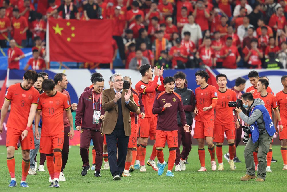 比赛结束后中国队主教练伊万率领队员绕场感谢球迷。