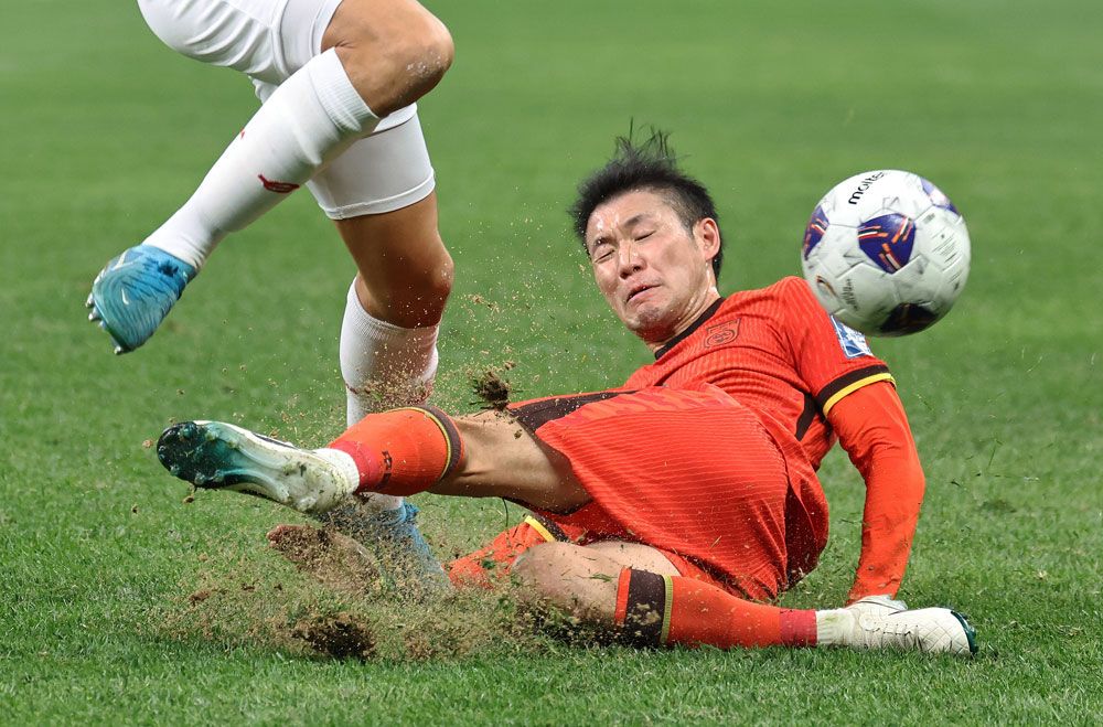 比赛一开始,中国队就展现了很好的精神面貌,拼劲十足,高位逼抢起到效果。第21分钟,中国队23号拜合拉木接队友倒三角回传射门得分,为中国队首开记录。第44分钟,中国队9号张玉宁接队友秒传形成单刀机会,他一蹴而就破门得分。上半场结束时中国队获得两球优势。