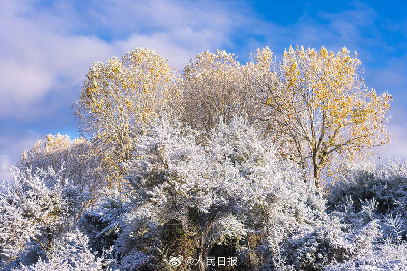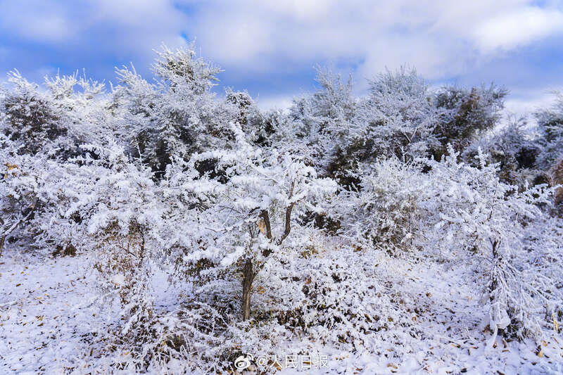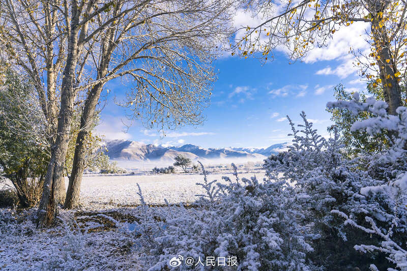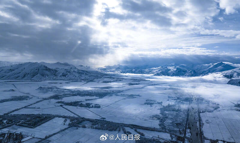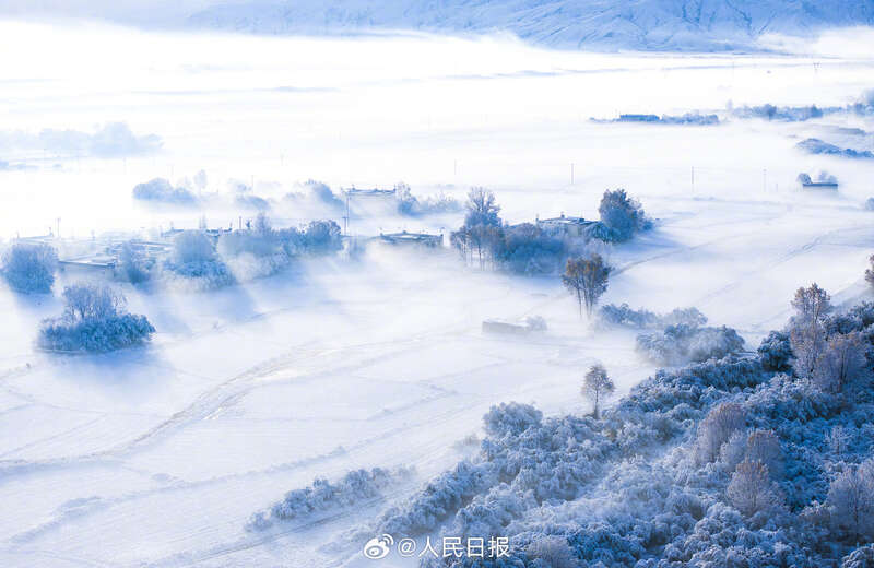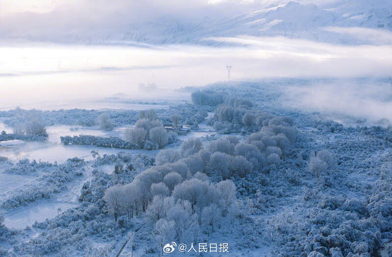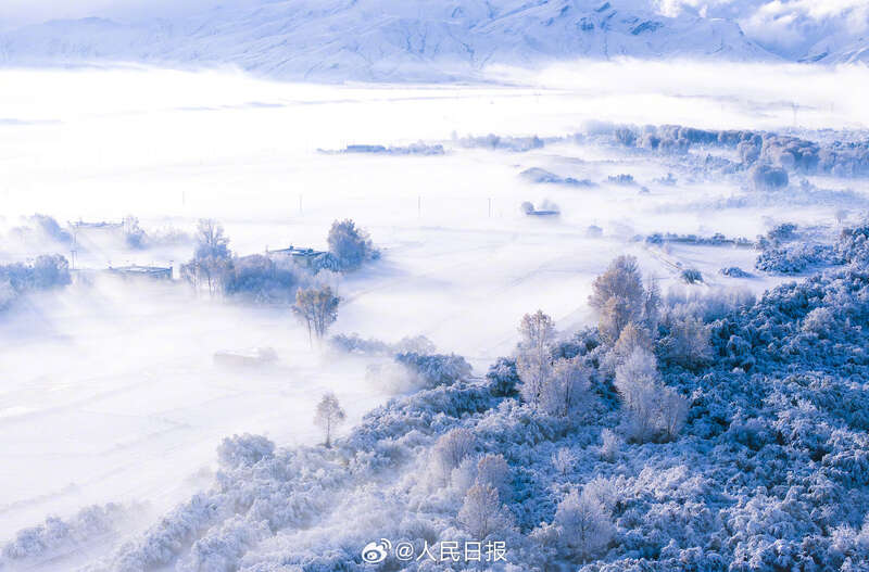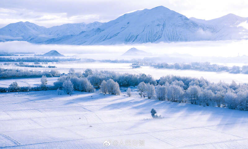近日,西藏日喀则迎来降雪。薄雾在山间缥缈缭绕,树林被白雪覆盖,宛如水墨画卷。