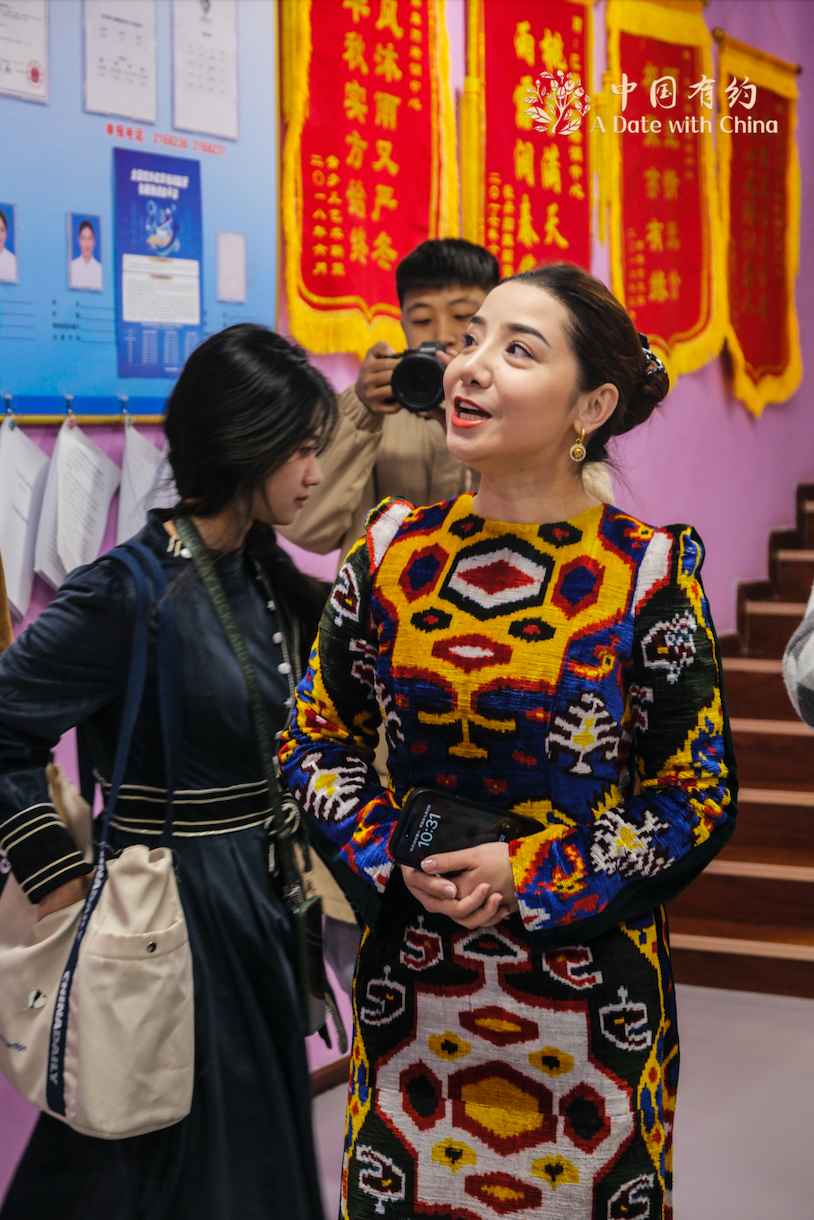 在参观期间,采访团一行纷纷换上自己喜爱的新疆传统服饰,在音乐中翩翩起舞,感受来自维吾尔族传统舞蹈热情与活力。