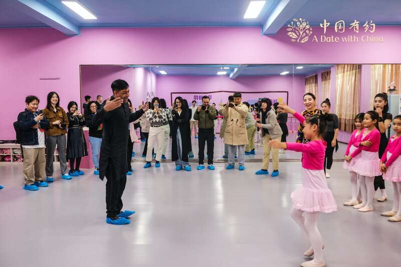 中国日报网10月27日电 (记者 潘一侨 许聃)10月26日,2024年“中国有约A Date With China”国际媒体采访团一行来到库尔勒市巴娜舞蹈培训中心,换上民族服装沉浸式体验维吾尔族传统舞蹈的魅力。