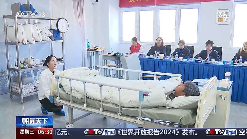 在养老护理员的比赛现场,选手经过抽签,依次进入考场,针对老年人日常生活中的常见问题,比赛中还特别设置了雾化吸入和口腔护理两个测试环节,主要考查选手的专业护理能力。
