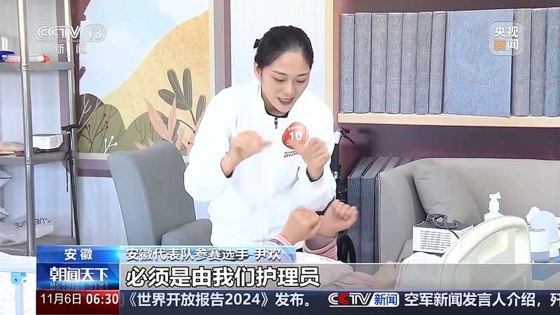 安徽代表队参赛选手 尹欢:像一些卧床老人或者半自理老人,必须由我们护理员给他进行一个口腔清洁,也可以预防感染。