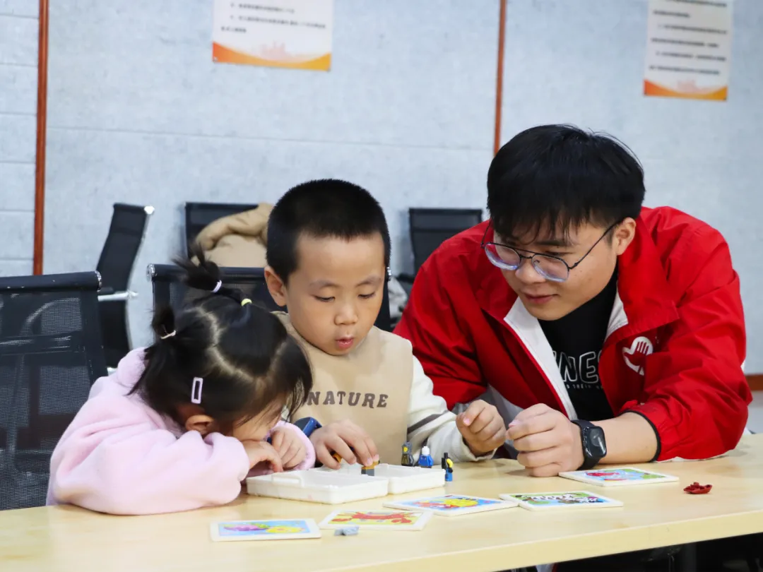 2023年12月25日 新疆生产建设兵团第十四师昆玉市西部计划志愿者,在青年之家红领巾学堂与小朋友一起游戏。(摄影/常文杰)