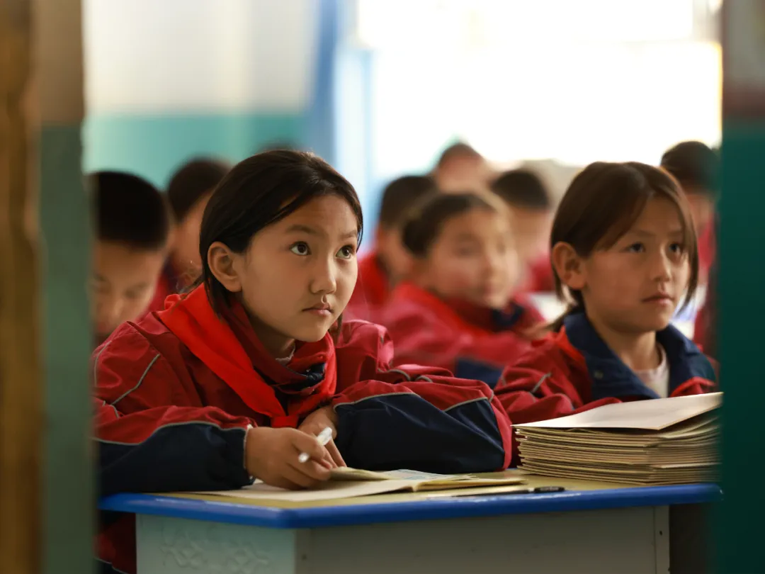 2024年10月22日 新疆喀什地区岳普湖县第三小学,孩子们在专心上课。(摄影/团中央新媒体中心 蒋璐吉)