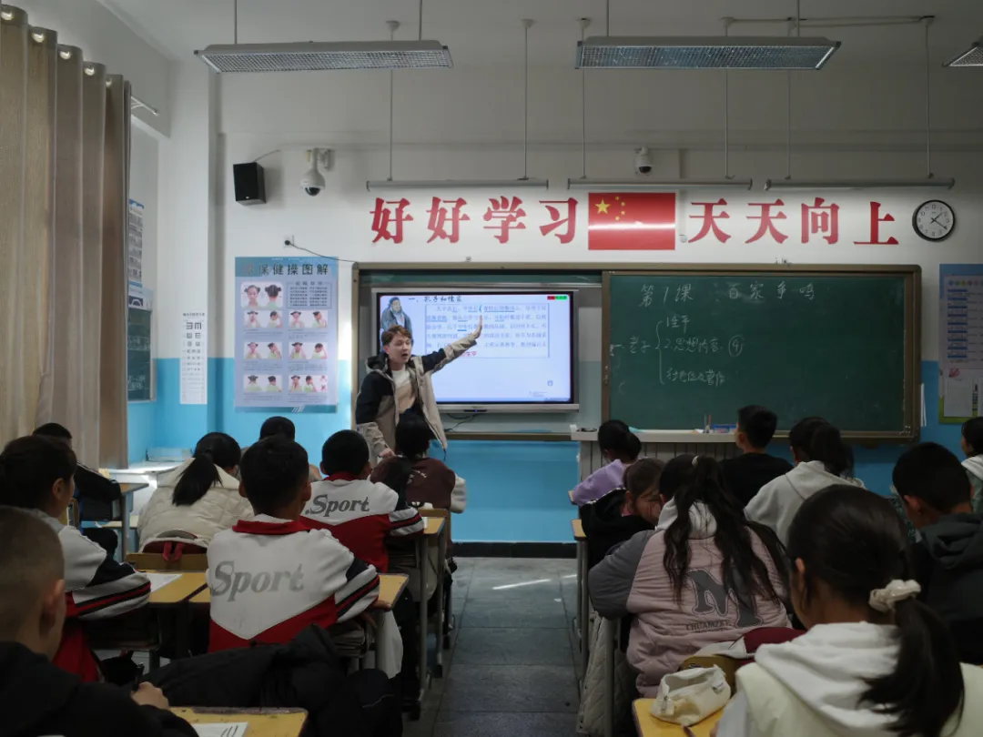 2024年10月15日 阿勒泰地区布尔津县布尔津初级中学,天津大学研究生支教团成员乌米提·艾维力江在课堂上给初一学生教历史课。(摄影/团中央新媒体中心 张国党)