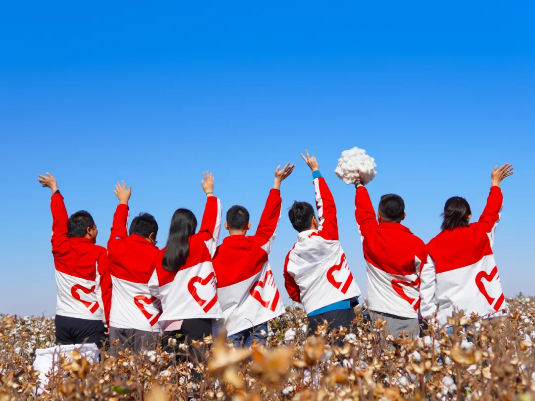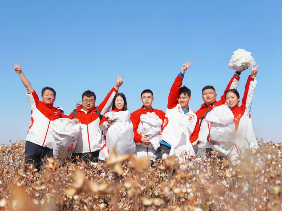 2024年9月30日 西部计划志愿者在新疆生产建设兵团第六师五家渠市共青团农场参与助农棉花采摘实践活动后留影。(摄影/2022年新疆生产建设兵团西部计划志愿者 任瀚飞)