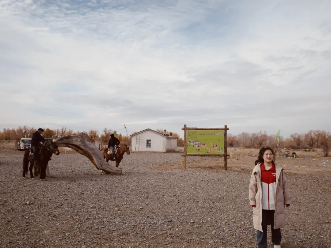 2024年10月16日 服务于哈巴河县的西部计划志愿者角文清,在电视剧《我的阿勒泰》拍摄地为游客们宣讲解阿勒泰地区。(摄影/团中央新媒体中心 张国党)