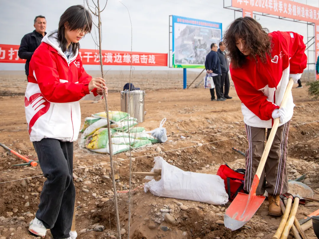 2024年11月1日 阿克苏地区库车市团委号召青年之家开展以“绿绘西部,青春植愿”为主题的植树造林活动。西部计划志愿者们拿着铁锹、锄头等工具,挖坑种树、挥锹填土,用自己的双手种下一棵棵待抽芽的小树苗,为荒凉的土地播种下希望。
