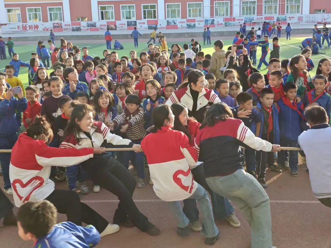 2024年10月30日 西部计划志愿者在阿图什市上阿图什镇博依萨克小学,参加全校师生拔河比赛。(摄影/2024年西部计划志愿者 王莉)