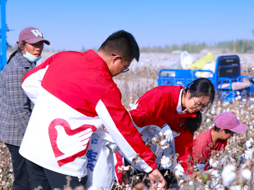2024年10月21日 西部计划志愿者参与助农棉花采摘实践活动。(摄影/团中央新媒体中心 蒋璐吉)