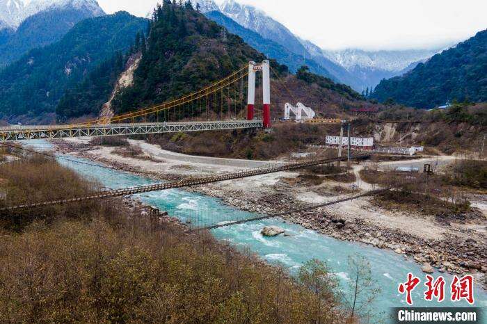 资料图为2023年1月15日,航拍川藏公路西藏波密通麦大桥,大桥下方为通麦老桥。记者 江飞波 摄