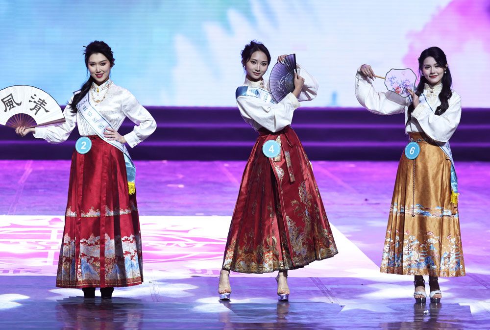 在比赛中,选手们的马面裙秀演绎“国服顶流”,优雅旗袍呈现中式复古时尚,礼服登场彰显现代女性的优雅力量……嘉宾表演亦是精彩纷呈,香港TVB“老戏骨”汤镇业献唱经典名曲《上海滩》,知名歌手蒋星越、聂琳峰、钟浩等纷纷献礼。