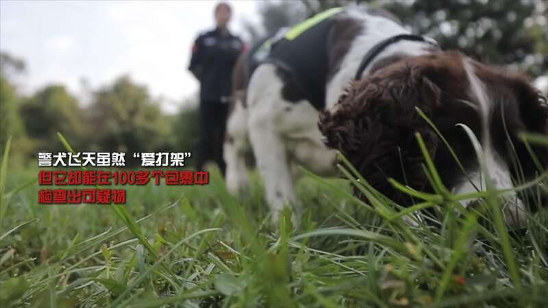 警犬“飞天”虽然爱打架,但能在100多个包裹中检查出可疑物。
