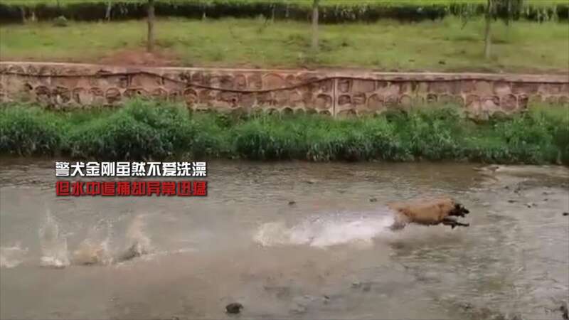 警犬“金刚”虽然不爱洗澡,但水中追捕能力迅猛。