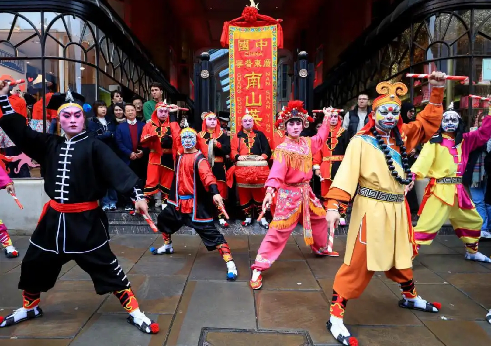 2024年2月11日,陈来发教练率领广东普宁南山英歌队的近20名舞者现身英国伦敦,揭开了当地新春庆典的帷幕,这也是普宁英歌首次出海。