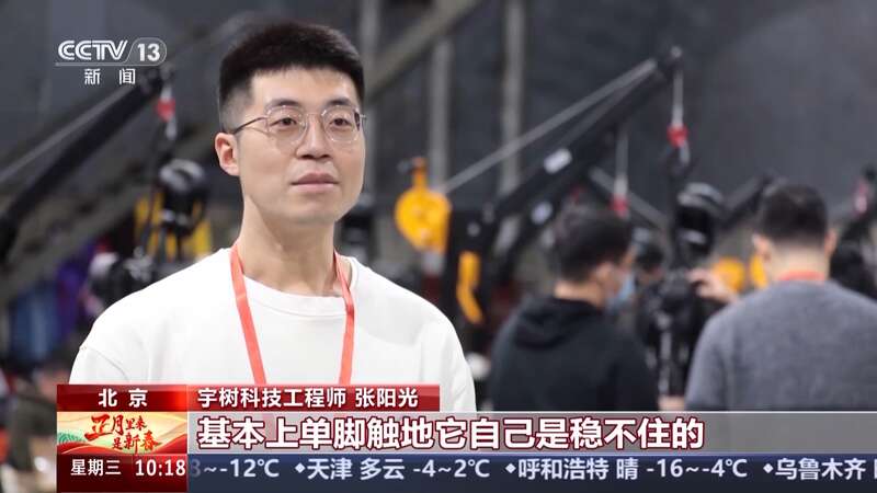 宇树科技工程师 张阳光:四足的机器人触地,很容易保持自己的平稳,但双足的机器人,基本上单脚触地它自己是稳不住的,其实还是保证它整个舞蹈动作里面,机器人自己的流畅性、稳定性,这是最重要的。