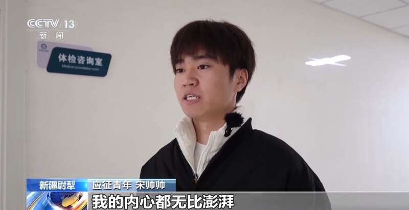 应征青年 宋帅帅:每当看到军人保家卫国的事迹,我的内心都无比澎湃,渴望能像他们一样,在火热的军营中锻炼自己,为祖国贡献力量。现在机会来了,我满怀期待,希望一切顺利,让我不留遗憾地穿上军装,开启军旅生涯,实现自己的人生价值。