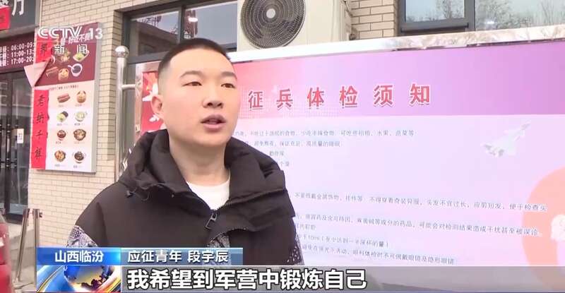 应征青年 段宇辰:作为一名大学生,我希望到军营中锻炼自己,培养坚韧的意志和强健的体魄,同时为国家的安全贡献一份力量。我相信,这段经历将让我成长为更有担当的人,也让我的人生更加有意义。