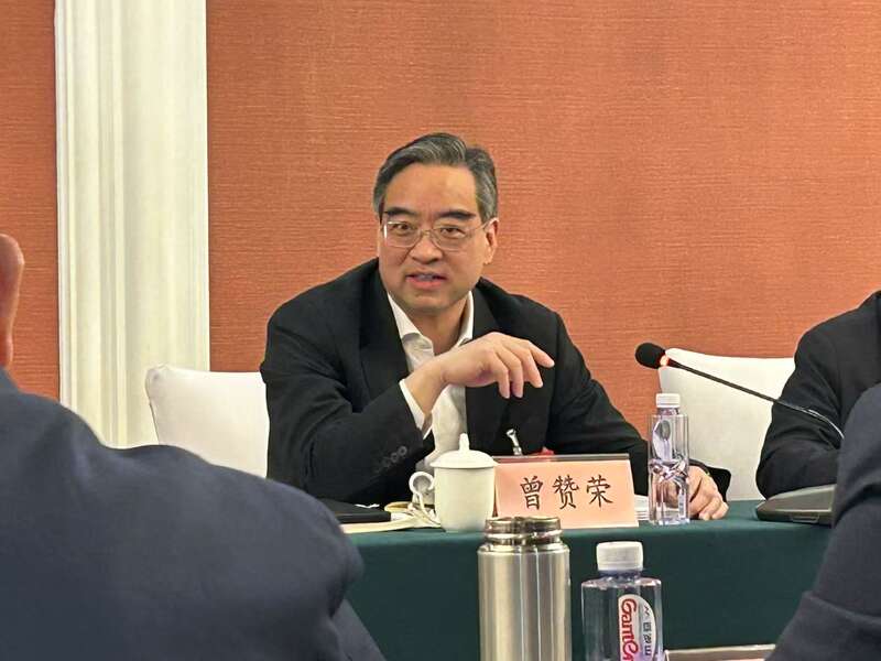 3月7日,第十四届全国人民代表大会第三次会议山东代表团在位于北京的住地举行分组会议,全国人大代表、山东省委常委、青岛市委书记曾赞荣在发言。中青报·中青网记者 贾骥业/摄