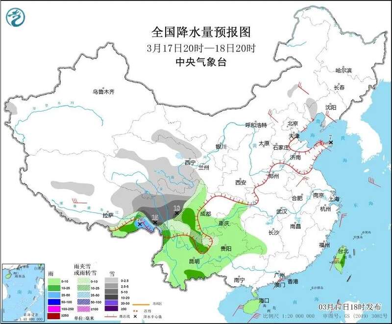 西藏东部、青海南部、甘肃河西、川西高原、云南东北部、贵州西北部等地部分地区有小到中雪或雨夹雪,其中,西藏东部、川西高原等地部分地区有大到暴雪。西藏东南部、四川东南部、重庆、云南、贵州、湖南西南部、广西西北部、海南岛、台湾岛等地部分地区有小到中雨,其中,西藏东南部的部分地区有大雨。