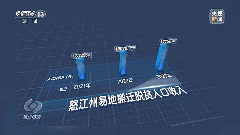 云南省怒江州发展和改革委员会党组成员 张庆华:全州易地搬迁脱贫人口收入统计表显示,2021年,易地搬迁脱贫人口的人均纯收入是1.3万元,2022年,是1.5万元,增幅达14.8%。2023年是1.7万元,增幅达到13.77%。