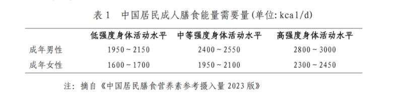 ●控制总能量摄入和保持合理膳食是体重管理的关键。控制总能量摄入,可基于不同人群每天的能量需要量(如下表),推荐每日能量摄入平均降低30%~50%或降低500~1000kcal,或推荐每日能量摄入男性1200~1500kcal、女性1000~1200kcal的限能量平衡膳食。
