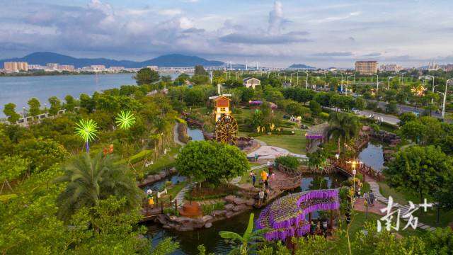 从下路村往北约5公里,就是工业强村塘埔村。曾经粗放式、高污染的发展模式,让这里欠下了生态账。近年来,塘埔村加快绿色转型,使用先进环保工艺,发展吹风机等特色产业,产品远销海外数十个国家和地区,蹚出一条经济与生态协调发展之路。村里还挖掘古村落人文底蕴,打造官渡公园、湿地公园和儒家文化公园三座主题公园,村容村貌显著提升。夜幕降临,主题公园灯光亮起,与榕江水面相映成趣,带旺了江边的露营经济、夜市经济。