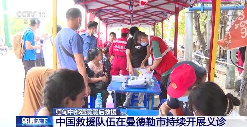 总台央视记者 张腾飞:目前,曼德勒市的医院只接收急诊病人,普通的病症医院是没有办法接收的。正因如此,由多支中国救援力量组成的义诊小分队直接把义诊点开到了大皇宫附近,来为大家提供急需的医疗救助。