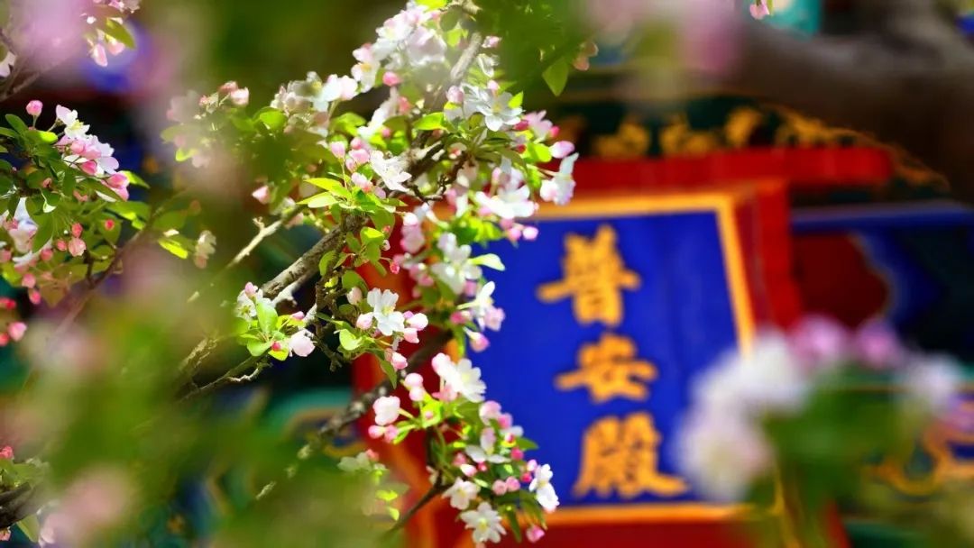 清明时节,北海公园春意盎然,海棠、丁香竞相绽放,迎来众多市民游客踏青赏花。琼华岛双虹榭广场、永安寺普安殿前,西府海棠花开如霞,与古朴建筑相映成趣;快雪堂内丁香簇簇绽放,淡雅清香沁人心脾。据记者了解,当前海棠、丁香正值盛花期,花期可持续至4月中旬。