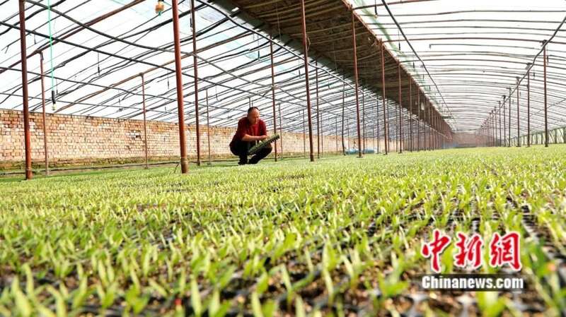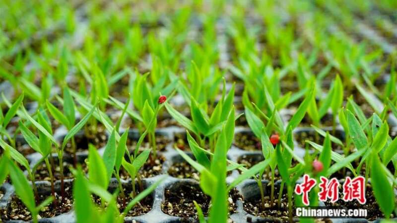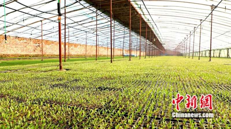 当地温室大棚培育辣椒苗。杨志荣 摄