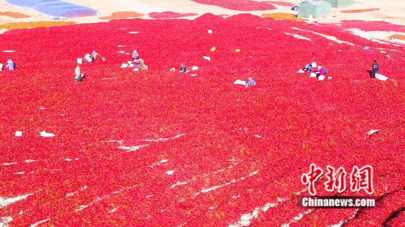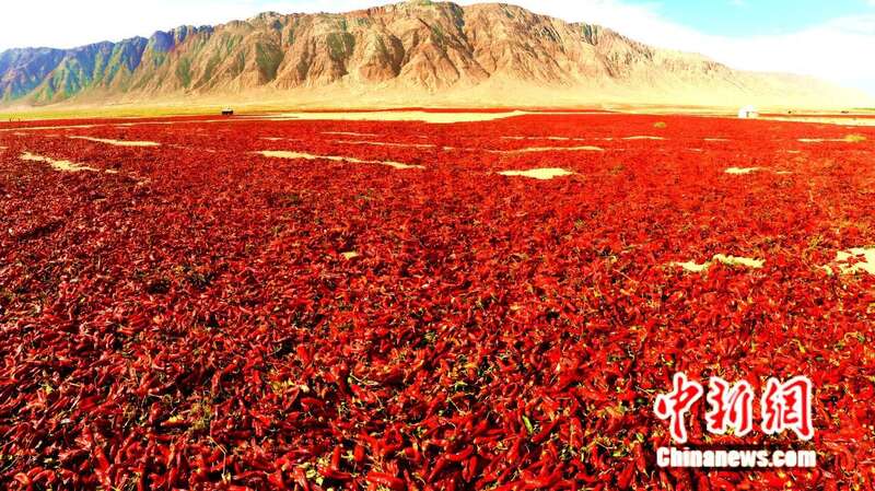 戈壁滩成晾晒红辣椒场地。杨志荣 摄