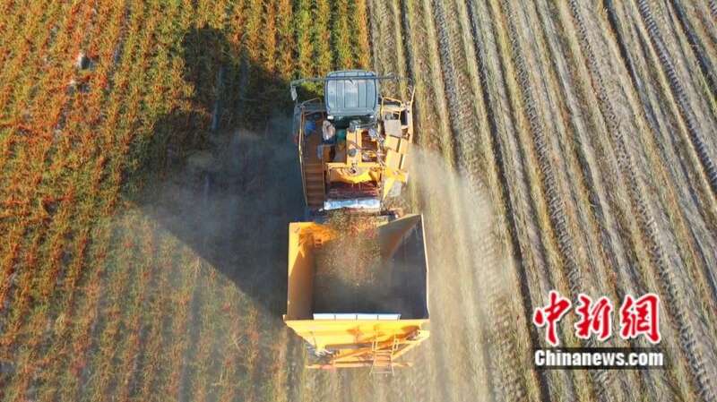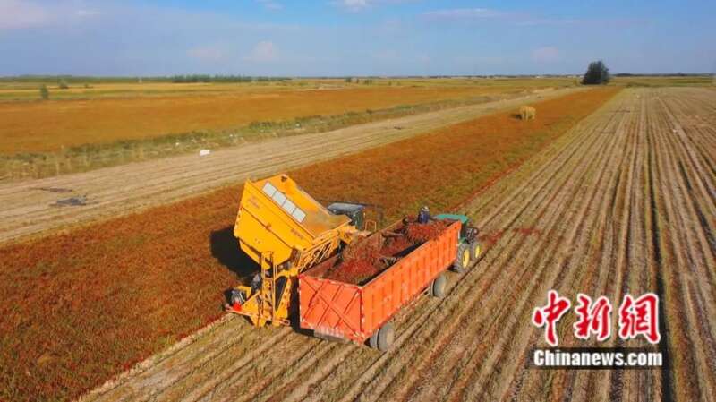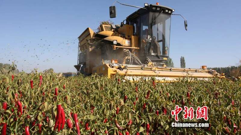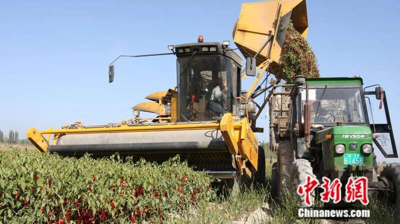 焉耆县机械采收工业色素辣椒。杨志荣 摄